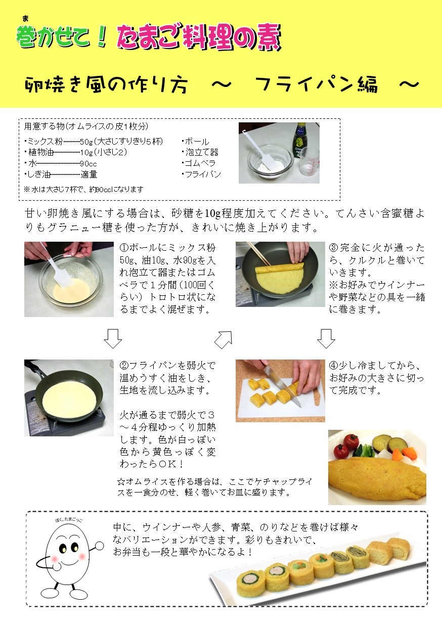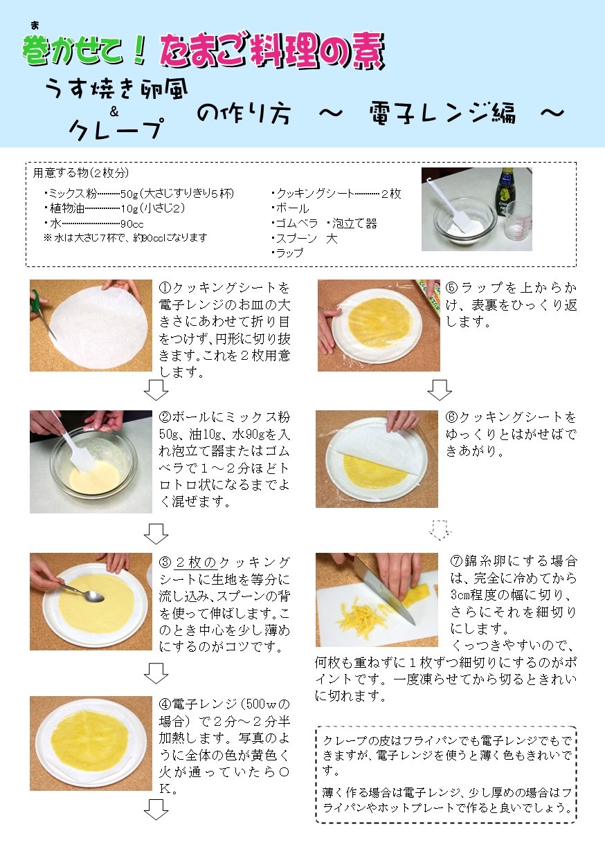 巻かせて!たまご料理の素300g■フライパンや、ホットプレート、電子レンジで簡単に薄焼き卵ができます。くるくるっと巻けばだし巻き卵風に。作り方がすぐ分かるレシピ付き